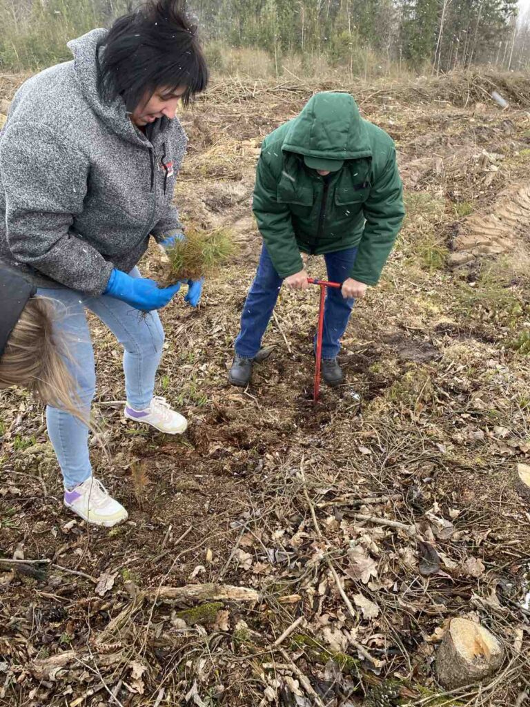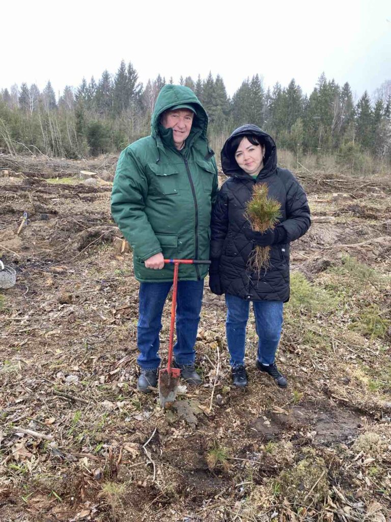 Высадили 1000 саженцев молодых деревьев сосен и берёз в Вороновском лесничестве вблизи деревни Дайнова на площади 0,5 га.