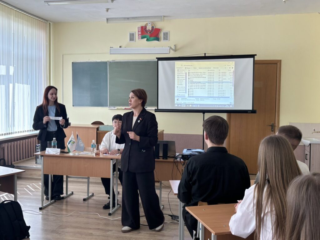 В проведении Урока мужества и славы в средней школе 8 города Гродно приняла участие председатель Гродненской областной организации Банковско-финансового профсоюза Оксана Десятниченко.