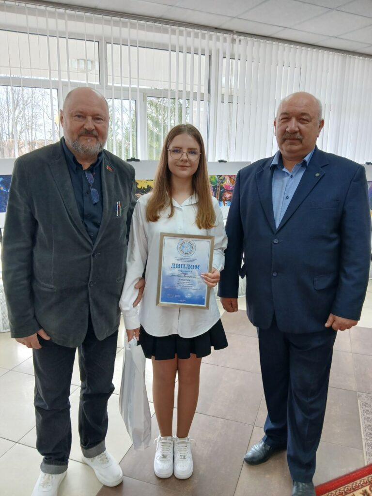 По итогам конкурса Анастасия была награждена Дипломом, а её работа «Мечты Вселенной «, выполненная в технике «Витраж», была признана одной из лучших среди более 200 предоставленных работ и получила право представлять регион на республиканском этапе в Минске.