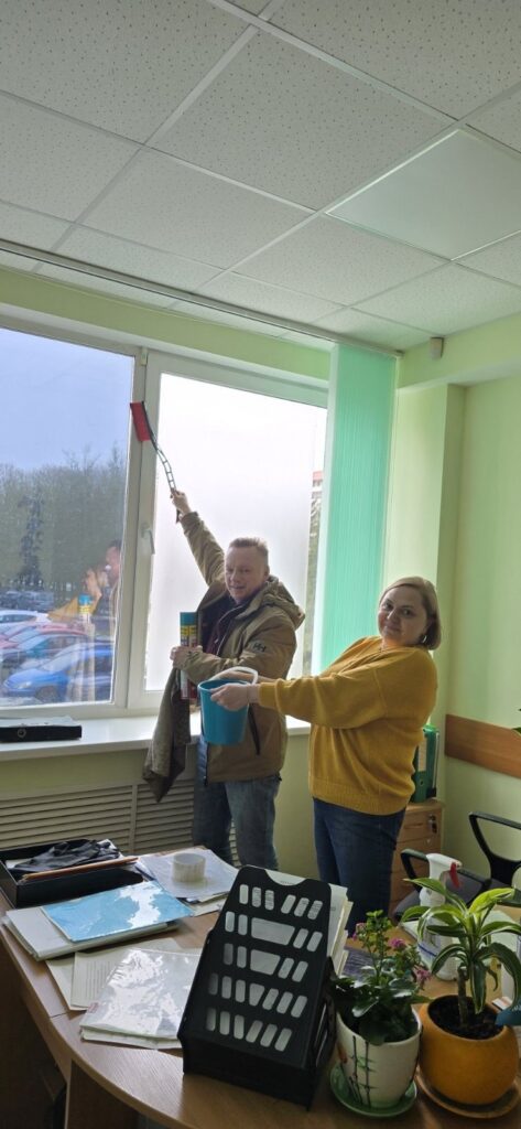 Сотрудники Гродненского областного управления № 400 Беларусбанка не остались в стороне: удаляли пыль, с любовью протирали цветы, чистили зеркала — наводили порядок на рабочих местах. Работа кипела несколько часов.