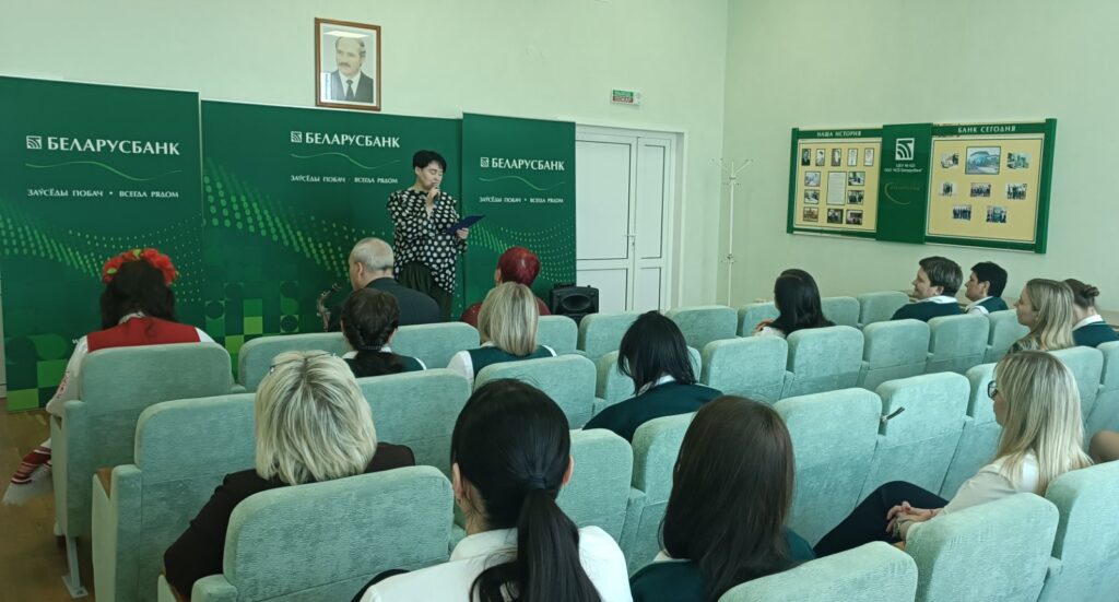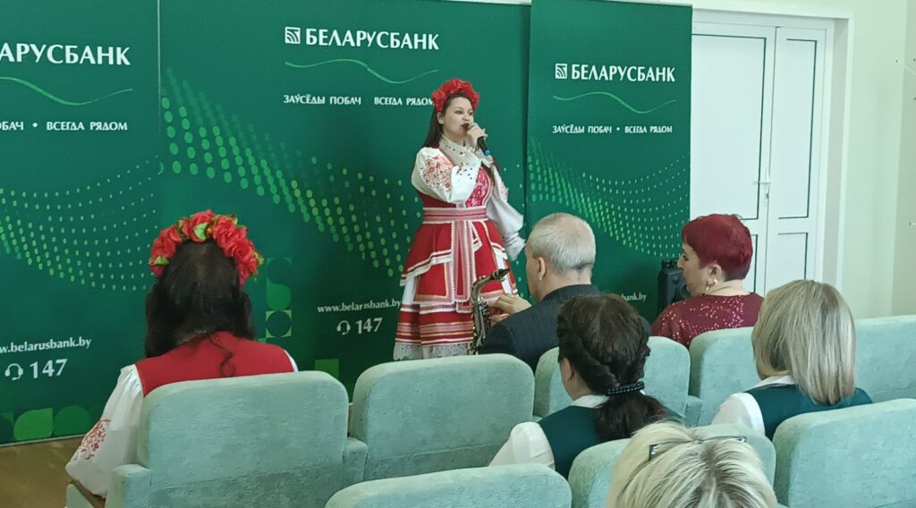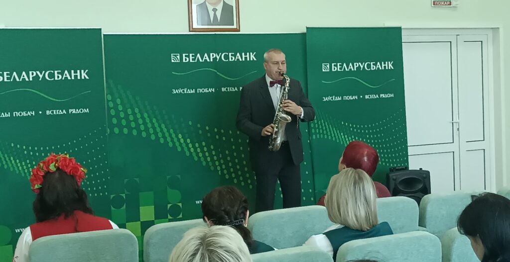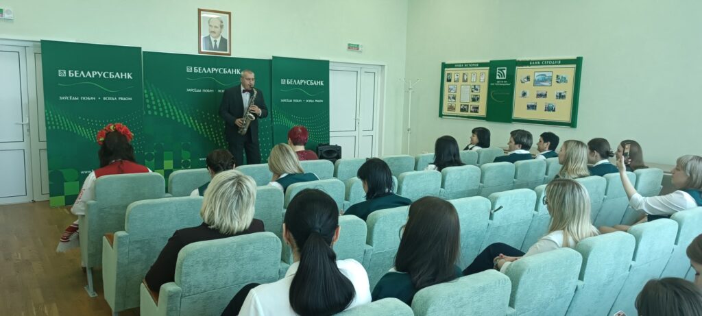 В рамках акции-поздравления женщин на рабочих местах «Благодарим за труд!», приуроченной Году белорусской женщины» артисты исполнили свою небольшую концертную программу, в которой звучали замечательные песенные композиции, а также завораживающий звук саксофона.