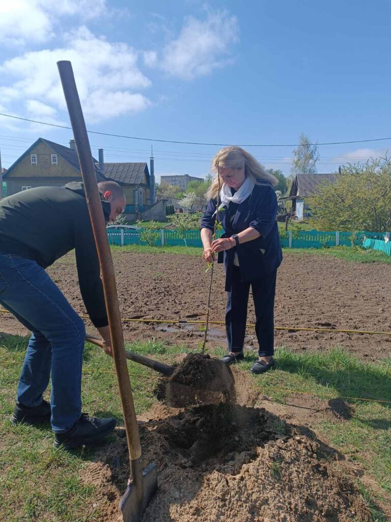 Представители первичных организаций ЦБУ № 422 ОАО «АСБ «Беларусбанк» г.Слонима во главе с директором учреждения Еленой Валерьевной Король в рамках реализации проекта «Благоустроим родительский дом» провели высадку плодово-ягодных деревьев на территории дома семейного типа, построенного ОАО «АСБ Беларусбанк».