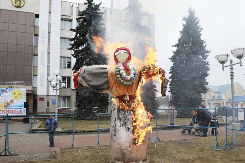 Автопарад «В гостях у сказки», конкурс на поедание блинов, Масленичный столб, и конечно же, кульминация праздника — сжигание чучела Масленицы!